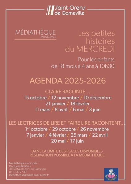 Les Petites Histoires du Mercredi à 10h30 : pour les enfants de 18 mois à 4 ans.